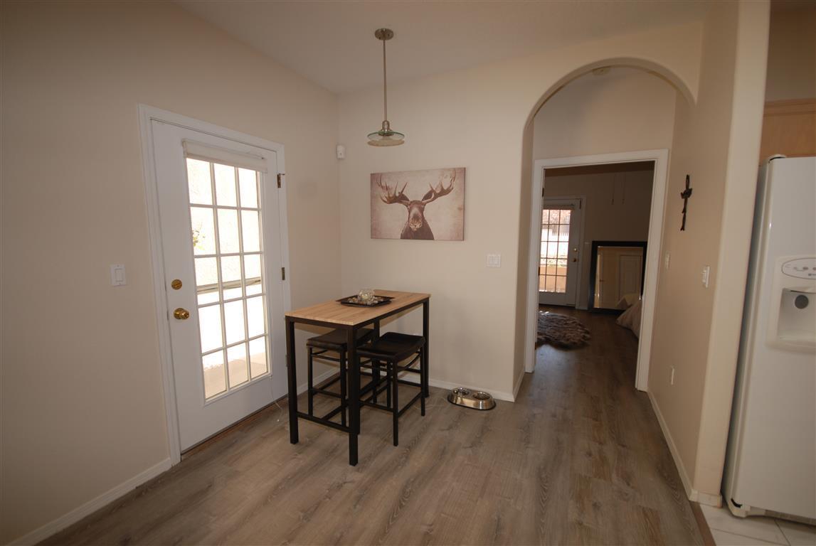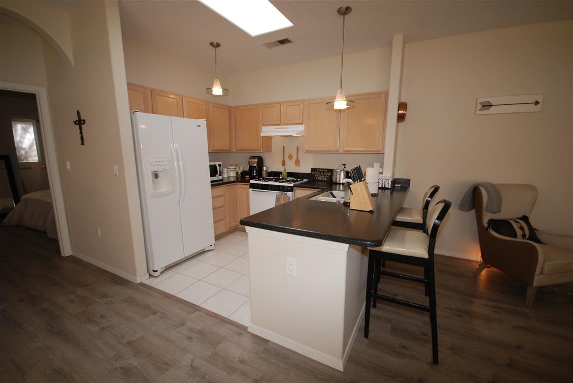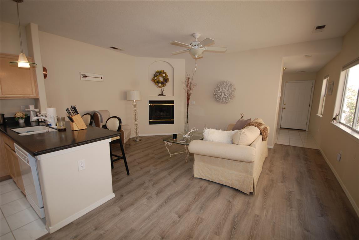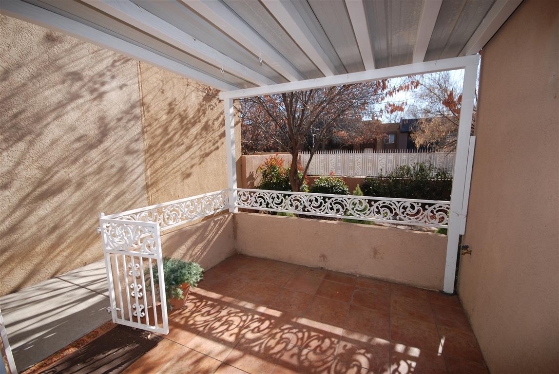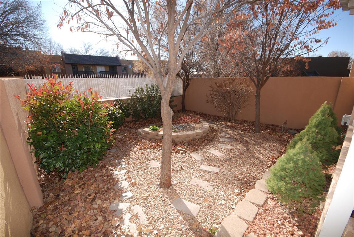 Charming one story townhouse near CNM. Separate 2 car garage with security gate to private patios and covered porch. All new laminate flooring throughout and soft neutral colors. Great room with gas fireplace, open chef’s kitchen, dining room nook. Large master in the back with ample closets and French doors out to covered patio and landscaped yard. Second bedroom or study up front. Laundry room with washer and dryer, 2 bathrooms. Call Liz for more information or to schedule a showing, (505) 250-1250.