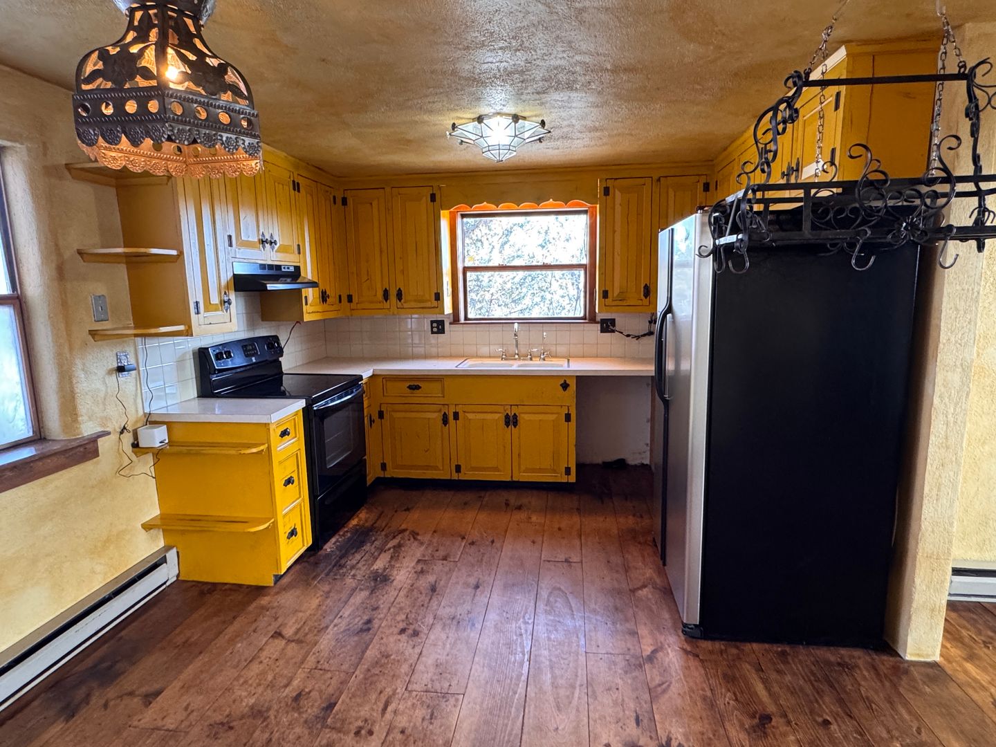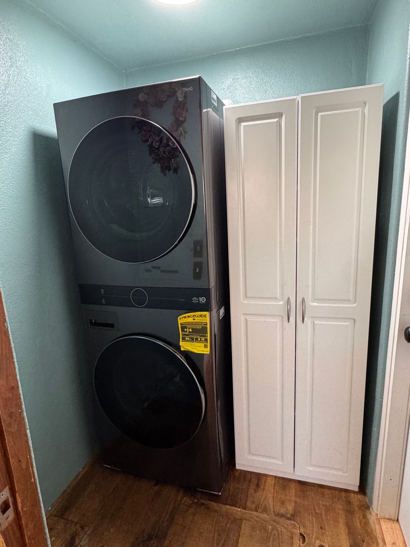 This 2-bedroom, 1-bath house offers aprox. 1,200 square feet of comfortable living with unique style throughout. Hardwood floors pair beautifully with custom Southwestern-inspired paint colors and accents. The home features a shared laundry room equipped with a washer and dryer for added convenience. Enjoy outdoor living on the wraparound porch. Electric baseboard heat, all utilities are included.