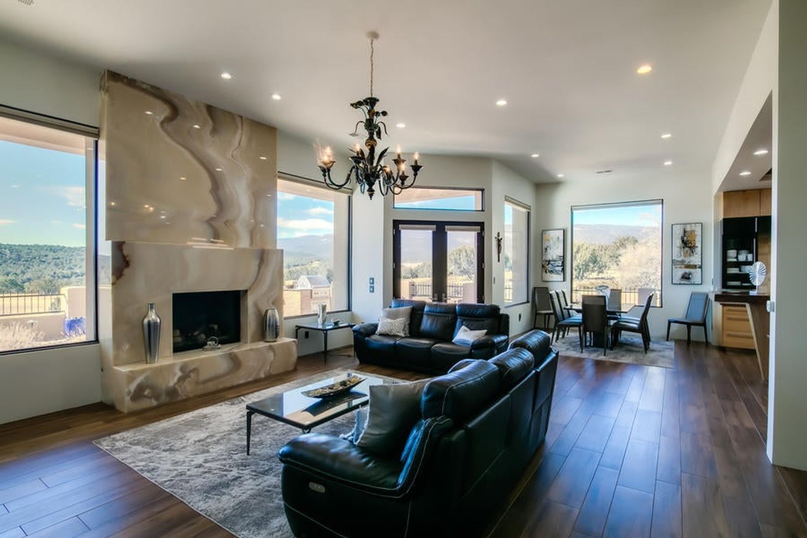 Rare find for a lease in Paako on the golf course. Gated entry leads to a 2900 sq ft custom home with an oversized garage. Spacious open floorplan has floor to ceiling Onxy gas fireplace, walls of windows with mountain and golf course views. Super modern kitchen, custom cabinetry, wine cooler, Bosch appliances. Lovely outside patio area with gas fire pit. Primary bedroom with walk in closet and luxurious bathroom. Two extra bedrooms with bath. All Appliances included plus an Ecco water conditioning system. Two heating systems, refrigerated air. Must call Liz Mazzola (505) 250-1250 for a personal interview and showing.